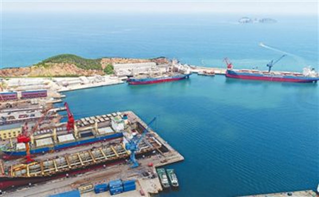 7月11日,位于山东省荣成市好运角旅游度假区的荣成新霞修船有限公司,来自韩国、新加坡等国家◆•,以及中国远洋等企业的多艘船舶停靠在码头进行维护保养▷,一派繁忙景象○▷▼。王福东摄(人民日报7月13日3版)
