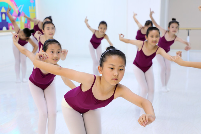 7月12日,山东省东营市东营区文汇街道一舞蹈培训学校教室里▽-,学生在练习舞蹈动作。