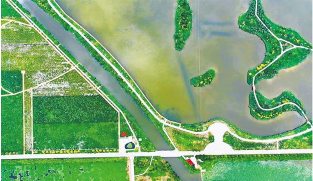 7月16日▽,阳谷狮子楼街道森泉湿地公园水清岸绿•,景致宜人▷。该公园采用“潜流湿地+表面流湿地+河道走廊湿地”工艺,深度净化中水,日最大水处理量7万立方米▽■■。近年来,当地多措并举开展农村生态湿地保护与恢复治理,建设乡村生态宜居环境○▲★。郭殿波摄(经济日报7月17日2版)