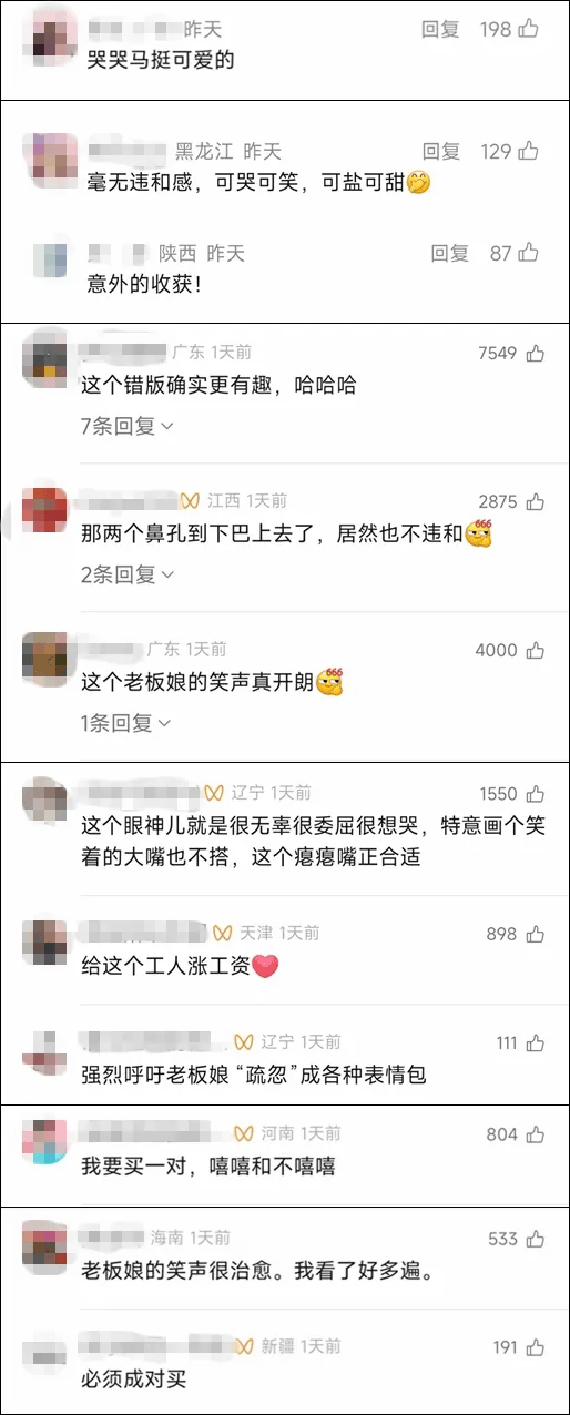 据了解,工人在缝制马年玩偶时误将上扬的嘴角缝成下撇,形成嘴角下垂、腮红鼻孔朝下的“委屈脸”,本属瑕疵品。然而,