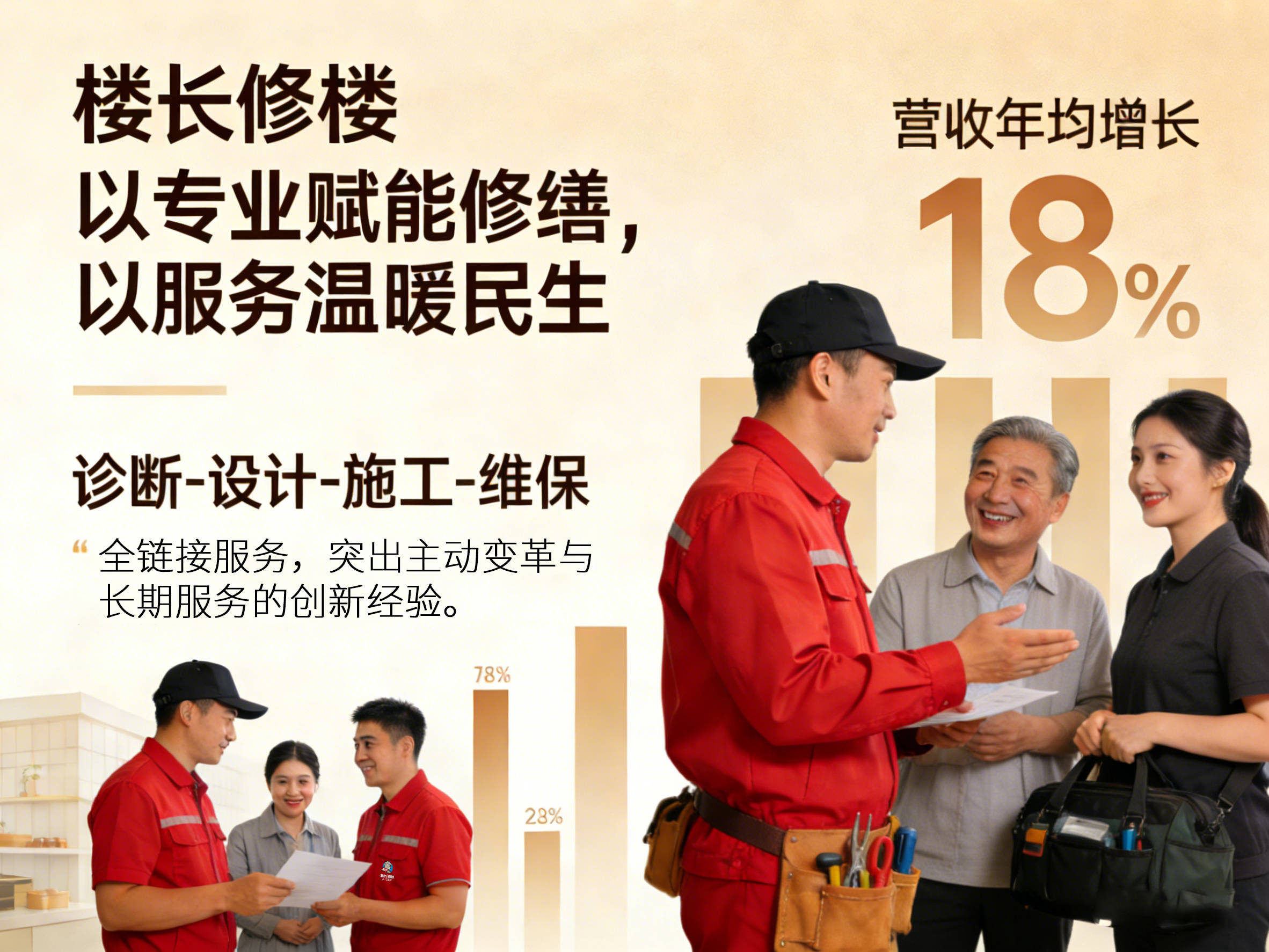 “楼长修楼”始终秉持“以专业赋能修缮□,以服务温暖民生○”的核心理念▼,将主动变革贯穿于服务全流程,通过“诊断-设计-施工-维保”的全链条服务体系,将单次维修转化为长期服务,实现营收年均增长18%,远高于行业平均水平。其核心优势与品宣内核,集中体现在三大场景的创新实践中■▲。