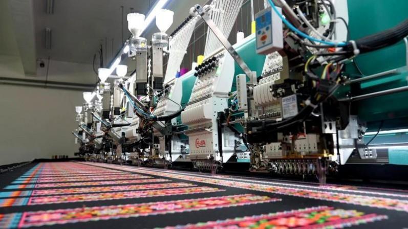 走进位于筠连县高坪苗族乡的筠连县蒙咪彩服饰有限公司,数字化生产车间内,智能化、自动化的两条生产流水线上,电脑绣花机高速运转•…●,针头以飞快的速度将彩线在布料上勾勒成画□。